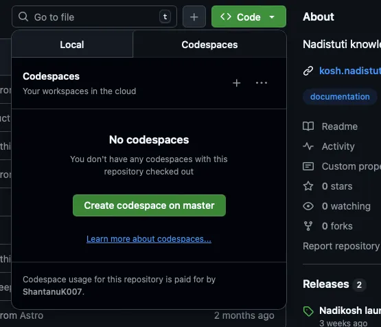 Section titled “Option 1: Quick Edits (Jump Directly to Codespace)”Choose this if: